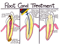 Root canal treatment involves the removal of the tooth's pulp (tissue in the center of the tooth). After the damaged, diseased or dead pulp is removed, the empty space previously occupied by the pulp is cleaned, shaped and filled. This procedure seals off the root canal. If an infected or dead pulp is left untreated, pus can build up at the root tip in the jawbone, forming an abscess. An abscess can destroy the bone surrounding the tooth and cause pain.